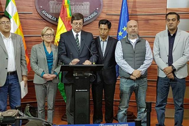 Los diputados y senadores de oposición, del Movimiento Demócrata Social (MDS) y de Unidad Nacional (UN), protestaron por lo que consideran un "golpe a la democracia", se refieren al recurso de inconstitucionalidad que presentó el Movimiento Al Socialismo (MAS) ante el Tribunal Constitucional Plurinacional (TCP) para posibilitar la candidatura presidencial de Evo Morales y la reelección de vicepresidente, gobernadores, alcaldes, asambleístas departamentales y concejales.