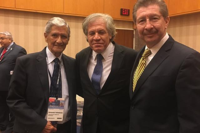 “Participamos en “Latin American Summit” defendiendo los Ds.Hs. y la democracia: Armando Valladares, Luis Almagro y Carlos Sánchez Berzain (sic)”, señala el texto que acompañó a la imagen publicada por el ex ministro.