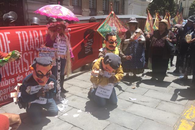 “El alcalde no quiere darle solución a este problema, el alcalde ya no sabe de dónde va a sacar más dinero, ahora ya está loteando la calles, ha carnetizado a los choferes. En vez de trabajar por la ciudad de La Paz, él está en campaña política con miras a la elecciones nacionales”, señaló la dirigente de los comerciantes Gladys Flores.