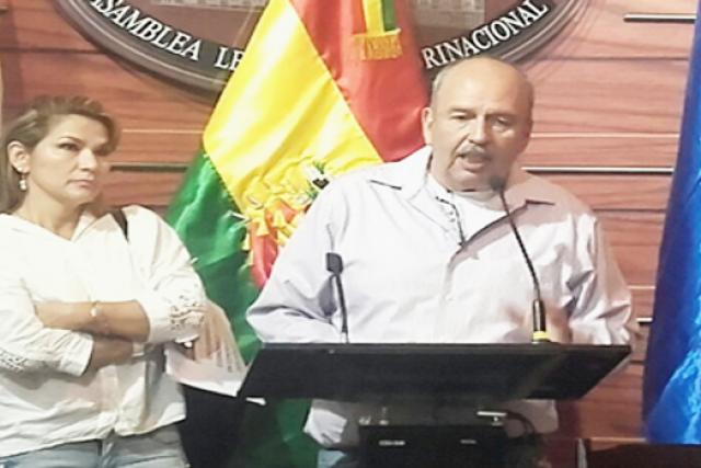 Murillo junto a la senadora Jeanine Áñez en contacto con la prensa. Foto: Bancada UD.