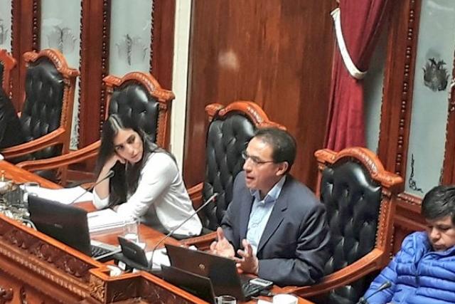 Guillén durante su interpelación en la Asamblea Legislativa. Foto: Senado de Bolivia.