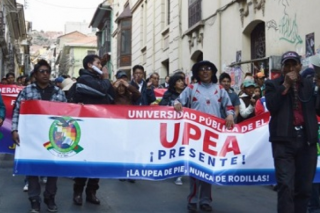 Los estudiantes, docentes y administrativos de la UPEA han salido a marchar en las principales calles de El Alto y La Paz en reclamo de más presupuesto.