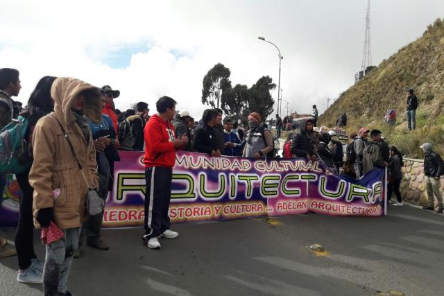Desde primeras horas de la mañana, los estudiantes, docentes y administrativos que participan en la movilización se dividieron en grupos para abarcar los distintos puntos y bloquear las principales vías entre El Alto y La Paz.