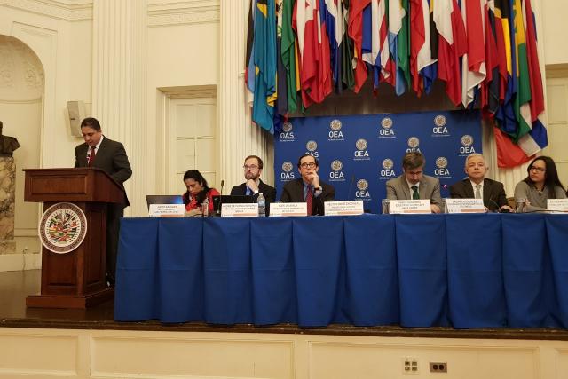 "Reafirmamos el compromiso indisoluble y característico del Estado boliviano, plasmado en nuestra propia Constitución Política del Estado, de respeto y aplicación preferente del Pacto de San José de Costa Rica", dijo el ministro de Justicia, Héctor Arce, ante representantes y miembros de la OEA.