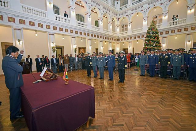 El presidente Evo Morales posesionó el lunes al nuevo Alto Mando Militar y designó al almirante Octavio Borda como nuevo comandante en Jefe de las Fuerzas Armadas (FFAA).