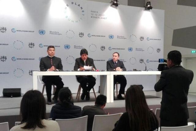 El presidente del Estado, Evo Morales, dio a conocer hoy la posición boliviana respecto al cambio climático en una conferencia de prensa que ofreció en París, sede la Cumbre del Clima contra el Cambio Climático.