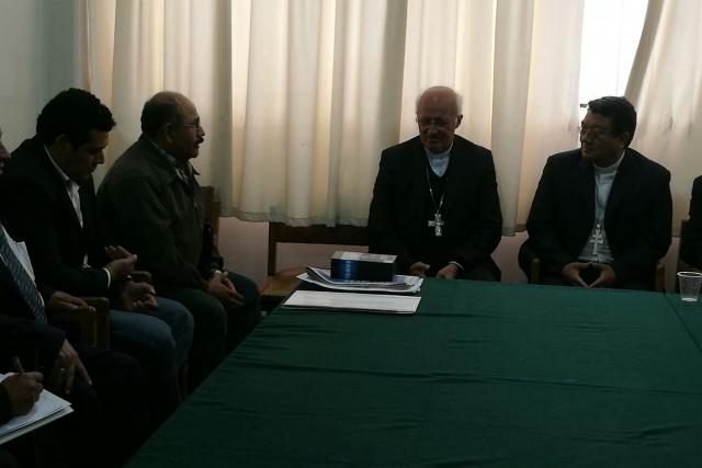 Médicos y representantes de la Conferencia Episcopal de Bolivia (CEB) se reunieron esta tarde para tratar de encontrar un camino de solución al conflicto que dio pie al paro general indefinido del sector de salud desde hace 26 días.