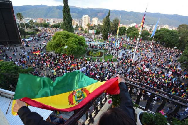 La medida acatada hoy concluyó con una movilización en las calles de gente portando banderas de Bolivia y de Cochabamba que se congregó en la plaza 14 de Septiembre y entonó el himno nacional. La marcha con mayor número de gente partió de la plaza de las Banderas, recorrió el Prado y llegó a la plaza principal cochabambina.