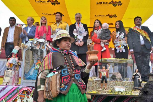 En una distendida ceremonia que contó con la participación del vicepresidente del Estado, Álvaro García Linera, y el alcalde de La Paz, Luis Revilla, y en la que no faltaron las bromas y la música, se inauguró oficialmente la Alasita 2018.