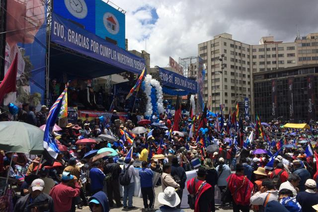 La plaza San Francisco de La Paz se llenó con la presencia de partidarios del Movimiento Al Socialismo (MAS) y organizaciones sociales que se congregaron para expresar su apoyo a la repostulación de Evo Morales para las elecciones presidenciales de 2019.