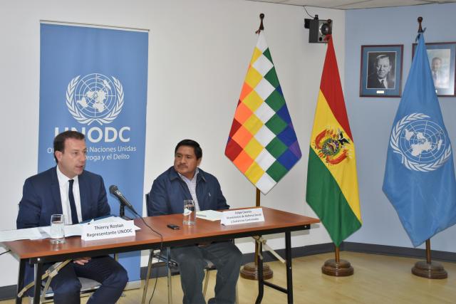 El representante en el país de la UNODC, Thierry Rostan, citó la preocupación expresada por la JIFE en su Informe respecto al aumento de la superficie total de cultivo de coca en 2016, en la que señala un aumento del 14% respecto al 2015 y la consiguiente alza en la producción prevista de hoja de coca.