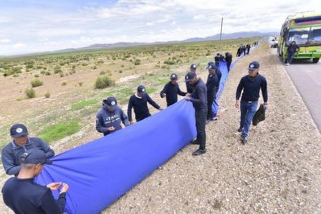 El plan del Gobierno es extender la bandera desde el Casco Minero de Oruro hasta la zona de la Apacheta, cerca de la ciudad de El Alto. No se descarta que, incluso, se alargue más.