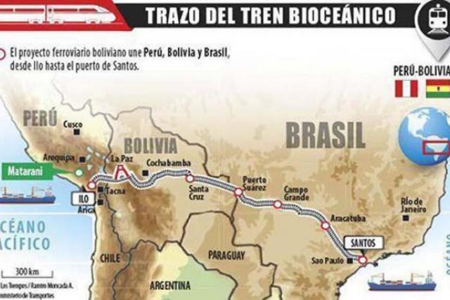 El tren bioceánico es un proyecto que pretende unir por vía férrea el puerto brasileño de Santos con el peruano de Ilo, a través de Bolivia.