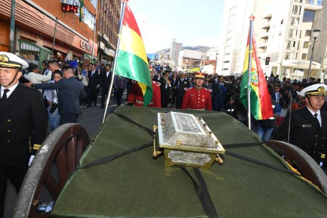 Los restos del defensor del mar fueron escoltados por cuadrillas de la Armada, el Ejército, los Colorados de Bolivia y la Caballería Militar desde la plaza San Francisco hasta la plaza Abaroa.