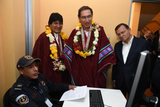 El presidente Morales participó en la inauguración, acompañó al nuevo presidente de Perú, Martín Vizcarra.
