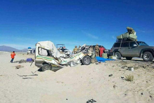 "Ocurrió un accidente de tránsito con consecuencias fatales en la carretera Oruro-Pisiga, a 9 km de la localidad de Huachacalla, (...) lamentar que existen 9 personas heridas y 6 fallecidas", dijo en conferencia de prensa