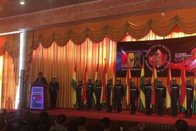 Morales participó esta mañana en la presentación de los 12 atletas miembros del Ejército que representarán a Bolivia en los XI Juegos Suramericanos.