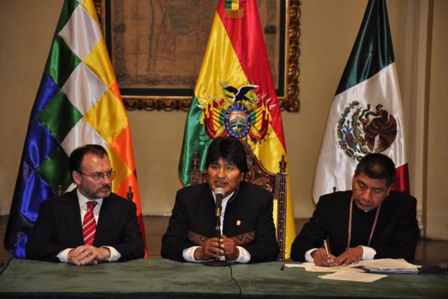 El presidente de Bolivia, Evo Morales, y el canciller mexicano, Luis Videgaray, se reunieron en Palacio de Gobierno.