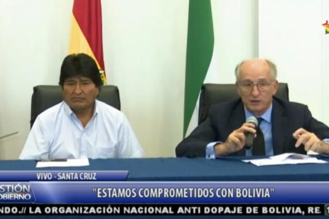 Brufau junto al Presidente luego de su reunión. Foto: Bolivia TV.