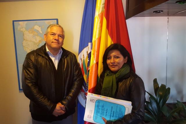 En esa línea, Chapetón visitó esta mañana al representante de la Organización de Estados Americanos (OEA) en Bolivia, Dr. Enrique Reina, para denunciar el intento de suspensión del Gobierno.
