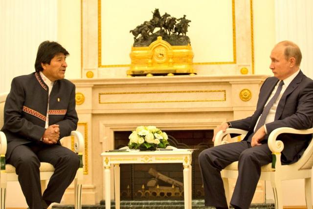 Putin y Morales "condenaron (…) los intentos de derrocar por la fuerza los Gobiernos legítimos, que contradicen las normas de la ley internacional, daña la soberanía de los países e impiden el fomento y la protección de los derechos humanos".