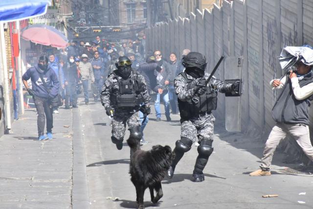 “Varios efectivos policiales han sido heridos por objetos contundentes, los manifestantes utilizaban piedras, petardos, y bengalas que lanzaban en contra de la humanidad de los policías y ellos (los oficiales) tenían la instrucción de resguardar la Plaza Murillo, ya que había un anuncio de tomar la Vicepresidencia y otras instituciones públicas”, aseveró.