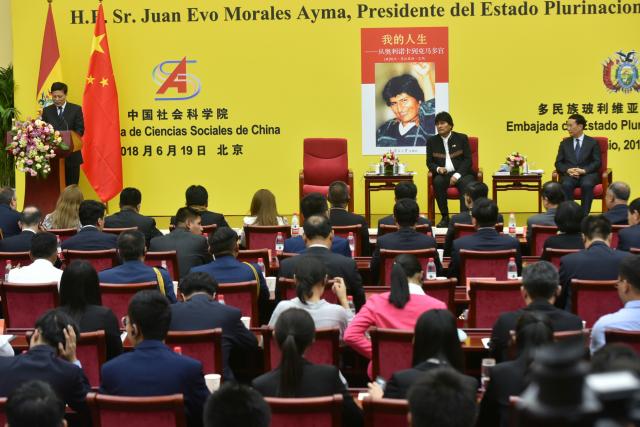 El presidente Evo Morales presentó el martes en la Academia de Ciencias Sociales de China, en Pekín, su libro autobiográfico titulado "Mi vida: de Orinoca al Palacio Quemado", traducido al mandarín. Lin Hua, miembro de la Academia de Ciencias Sociales de China, ponderó que el libro subraya los avances del país en el ámbito social.