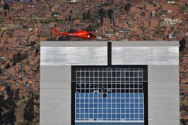 Un helicóptero de la Fuerza Aérea Boliviana probó el helipuerto de lo que será el nuevo edificio.