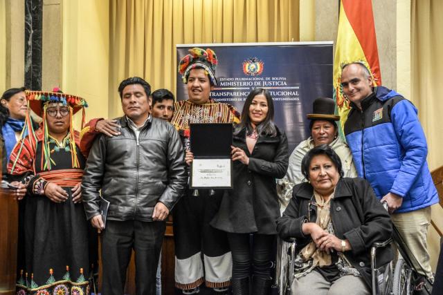 A su turno, la viceministra Morales manifestó que el Ministerio de Justicia y Transparencia Institucional gestionó la aprobación de este decreto supremo en consenso con la Defensoría del Pueblo, ministerios de la Presidencia, Salud, Trabajo Empleo y Previsión Social, Economía y Finanzas Públicas. “Recibo con humildad este reconocimiento a nombre del ministro Héctor Arce y seguiremos trabajando por la inclusión de todos los sectores. Con la nueva medida legal se beneficia a 12.818 personas con discapacidad”, señaló.