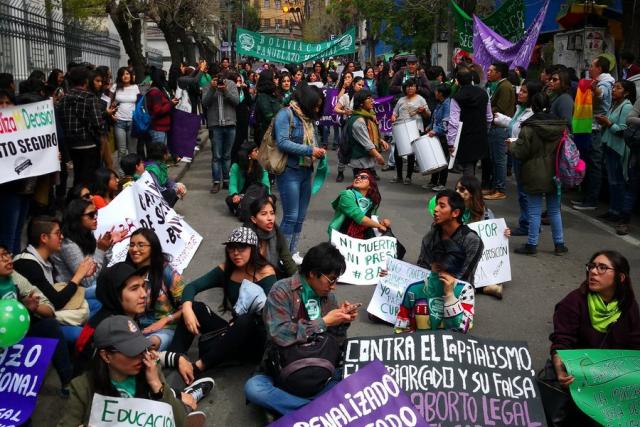 Con carteles de “aborto penalizado, crimen de Estado”, y gritos de "se cuidan se cuidan los machistas. América Latina va ser toda feminista", aproximadamente un centenar de activistas marcharon por las calles de La Paz hasta llegar a la Embajada de Argentina.
