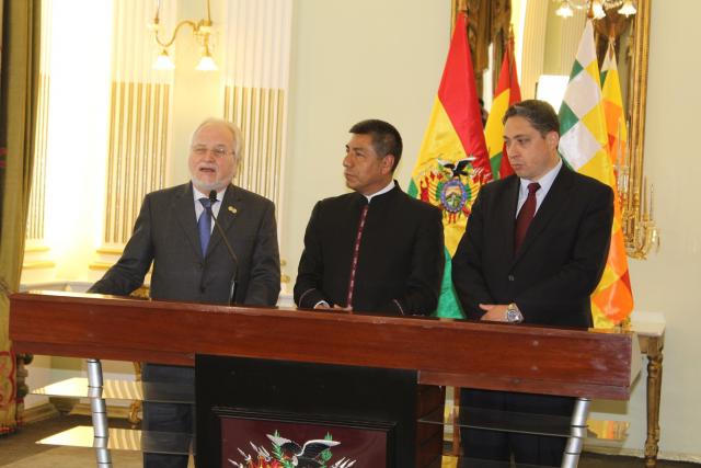 En ese marco, el ministro de Relaciones Exteriores, Fernando Huanacuni, recibió esta jornada a Eguiguren, en instalaciones de la Cancillería del Estado, e informó que el visitante cumplirá una "agenda oficial y privada" en las ciudades de La Paz, Cochabamba y Santa Cruz.