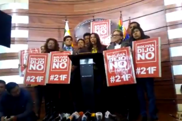En este sentido, los Demócratas exigieron que para que se apruebe este proyecto de ley se ponga como condición que no puedan presentarse a primarias aquellas personas que el pueblo de Bolivia ha inhabilitado en referendo o que la Constitución se lo impide.