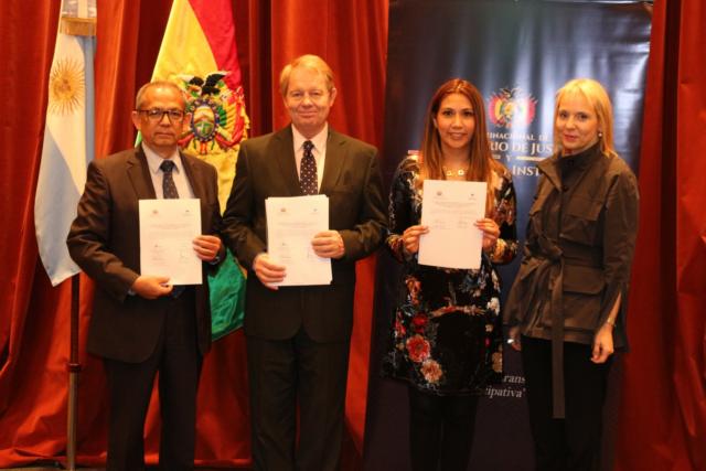 La alianza fue suscrita por la directora general de la Niñez y Personas Adultas Mayores, Ninoska Durán Burgoa, y por parte de la universidad argentina el decano de la Facultad de Derecho, Jorge Albertsen.