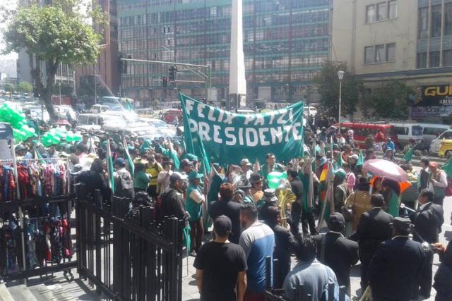 Los militantes del MTS se concentraron en el Obelisco de la ciudad de La Paz, durante la mañana de este viernes, para marchar desde allí hasta la sede del TSE en la plaza Avaroa, la misma que fue encabezada por el Gobernador de La Paz, Félix Patzi.