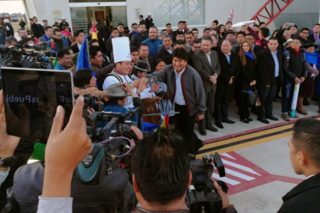 Evo retornó al país tras la derrota en La Haya, fue recibido por ministros y organizaciones sociales
