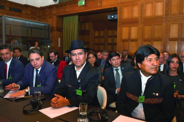 El canciller Pary acompaño a Morales a escuchar el fallo de la CIJ.