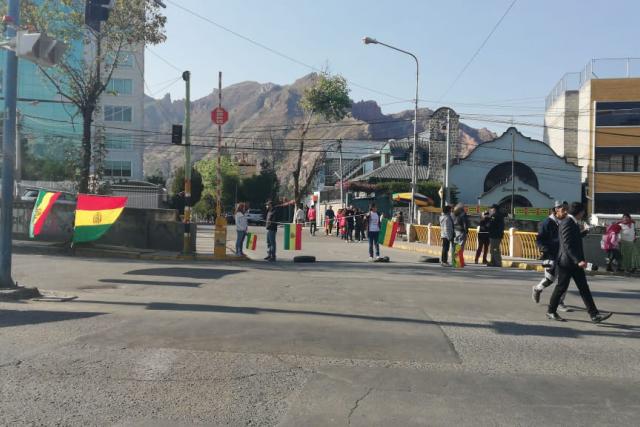 El día de la democracia empezó con la protesta de plataformas ciudadanas que, con banderas y cintas referidas al 21- F se apostaron en diferentes esquinas de la ciudad de La Paz para tratar de cerrar las vías.