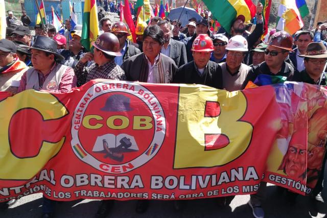 Morales se unió a la marcha de la COB en la zona de La Portada y encabeza la movilización que se dirige al centro paceño.