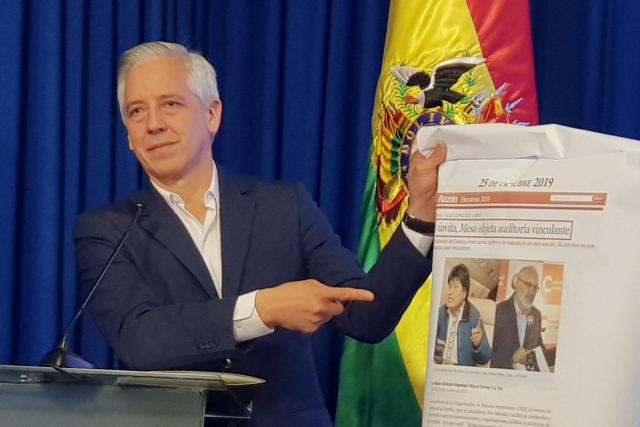 En ese sentido, cuestionó que sea, precisamente, Carlos Mesa quien rechace la realización de una auditoría por parte de la Organización de Estados Americanos (OEA) y señaló que el candidato de CC tiene miedo a que en ese proceso se termine de confirmar su derrota electoral.