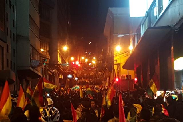 Tras el cabildo que se desarrolló en el puente de la Cervecería, en la avenida Montes de la ciudad de La Paz, personas que rechazan los resultados de las elecciones intentaron entrar a la Plaza Murillo de La Paz y se enfrentaron a la Policía.