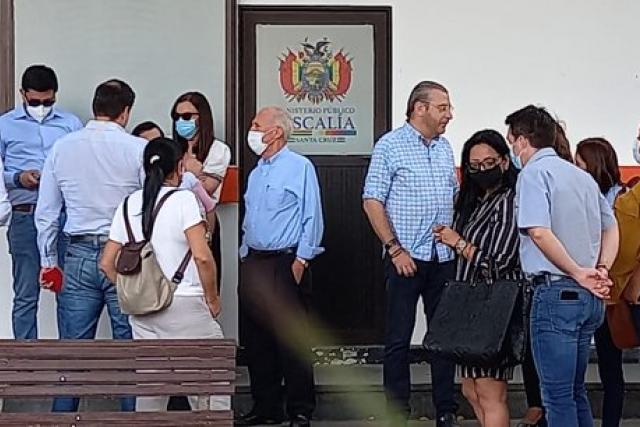 El padre del Gobernador de Santa Cruz estuvo cerca de 90 minutos en la Fiscalía y a su salida, recibió el saludo del presidente cívico Rómulo Calvo y de algunos parlamentarios que llegaron a este lugar.