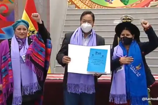 El presidente del Estado, Luis Arce, recibió este martes el anteproyecto de ley de fortalecimiento a la Ley Integral para Garantizar a las Mujeres una Vida libre de Violencia (348) y solicitó a la Asamblea Legistaltiva Plurinacional (ALP) priorizar su tratamiento.