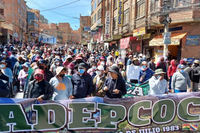 Desde hace dos semanas, cocaleros liderados por el dirigente Freddy Machicado se movilizan en La Paz y se enfrentan a la policía en rechazo al funcionamiento de un mercado paralelo bajo control del dirigente Arnold Alanes.