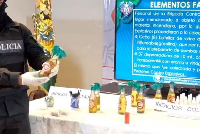 El director nacional de la Unidad de Bomberos, Jorge Ríos, detalló que se secuestraron ocho bombas molotov y artefactos explosivos fabricados artesanalmente.