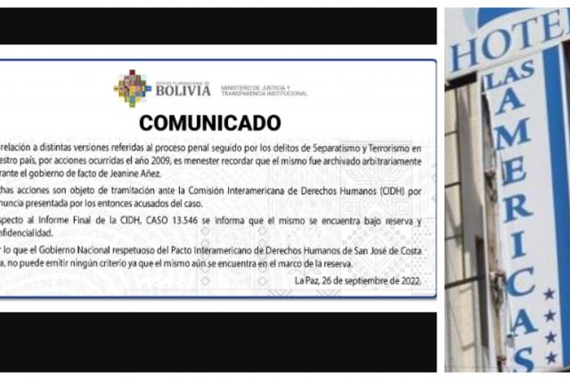 La posición del Ministerio de Justicia llega después de que el fin de semana un medio de comunicación nacional revelara que la Comisión Interamericana de Derechos Humanos (CIDH) determinó que en 2009, durante el gobierno de Evo Morales en Bolivia, las fuerzas del Estado ejecutaron extrajudicialmente y torturaron a cinco miembros de un supuesto grupo armado.