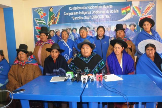 La Confederación Nacional de Mujeres Bartolina Sisa advirtió, en una resolución sectorial, que responsabilizarán al gobernador de Santa Cruz, Luis Fernando Camacho; al presidente cívico, Rómulo Calvo; y el rector de la Universidad Gabriel René Moreno (Uagrm), Vicente Cuellar; de una posible situación de violencia generada con el paro indefinido anunciado en la capital cruceña desde el sábado.