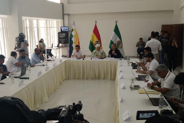 El Gobierno está representado por la ministra de la Presidencia, María Nela Prada; el portavoz presidencial, Jorge Richter; el ministro de Planificación, Sergio Cusicanqui; la viceministra de Comunicación, Gabriela Alcón y el viceministro de Autonomías, Álvaro Ríos.