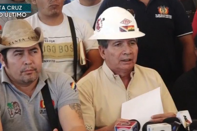 “Garantizamos operación de nuestras plantas, oleoductos, gasoductos y exportación solo por estas 48 horas, después vamos a desabastecer completamente, ya está bueno que unos cuantos logieros nos quieran someter”, anunció Rolando Borda, ejecutivo de la Central Obrera Departamental (COD) de Santa Cruz, en conferencia de prensa junto a dirigentes de otras organizaciones.