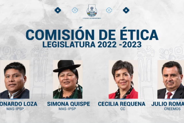 La Comisión está integrada por los senadores Leonardo Loza y Simona Quispe Apaza del Movimiento Al Socialismo (MAS-IPSP), Cecilia Requena de Comunidad Ciudadana (CC) y Julio Romaña de Creemos.