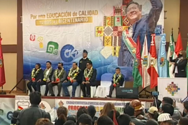 El acto se desarrolló en la ciudad de Oruro y el Presidente del Estado fue enfático en señalar que el país pudo “normalizar” su educación tras la clausura del año escolar decretada el 2020 por el Gobierno de Jeanine Añez a raíz de la pandemia del Covid.19.